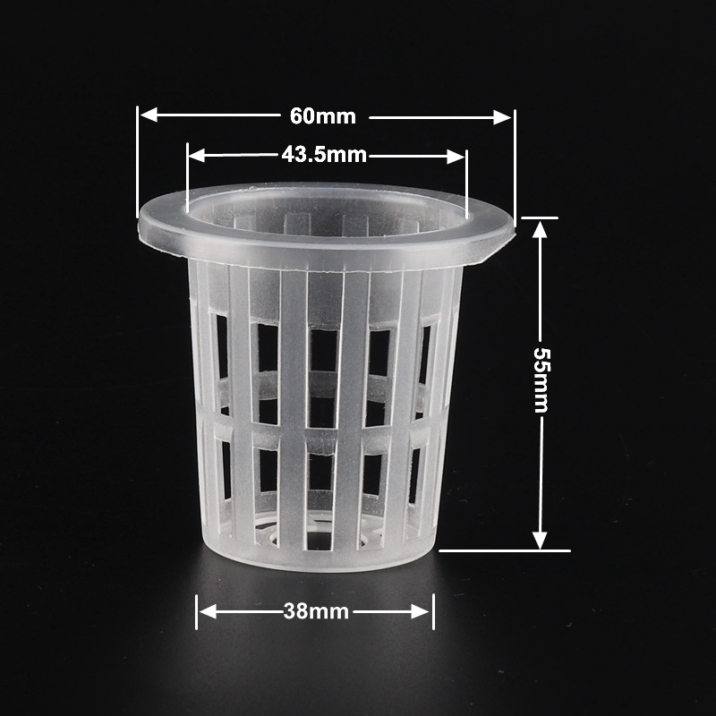 These net pots are used for hydroponic systems that have the plants roots suspended over a nutrient solution. Heavy Duty Net Pots in both transparent and black colors Model. 435mm 60mm 55mm 50.